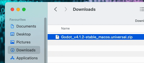 Pakk ut .zip-filen og dra Godot.app til Applications-mappen. Eventuelt, hvis du ikke har admin-privilegier, kan du også kjøre Godot ved å dobbeltklikke på Godot.app.